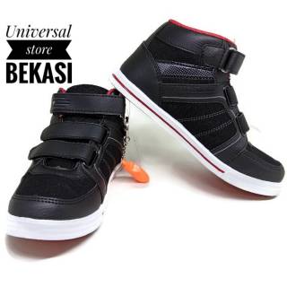Jual sepatu anak sekolah boot full hitam perekat / velcro