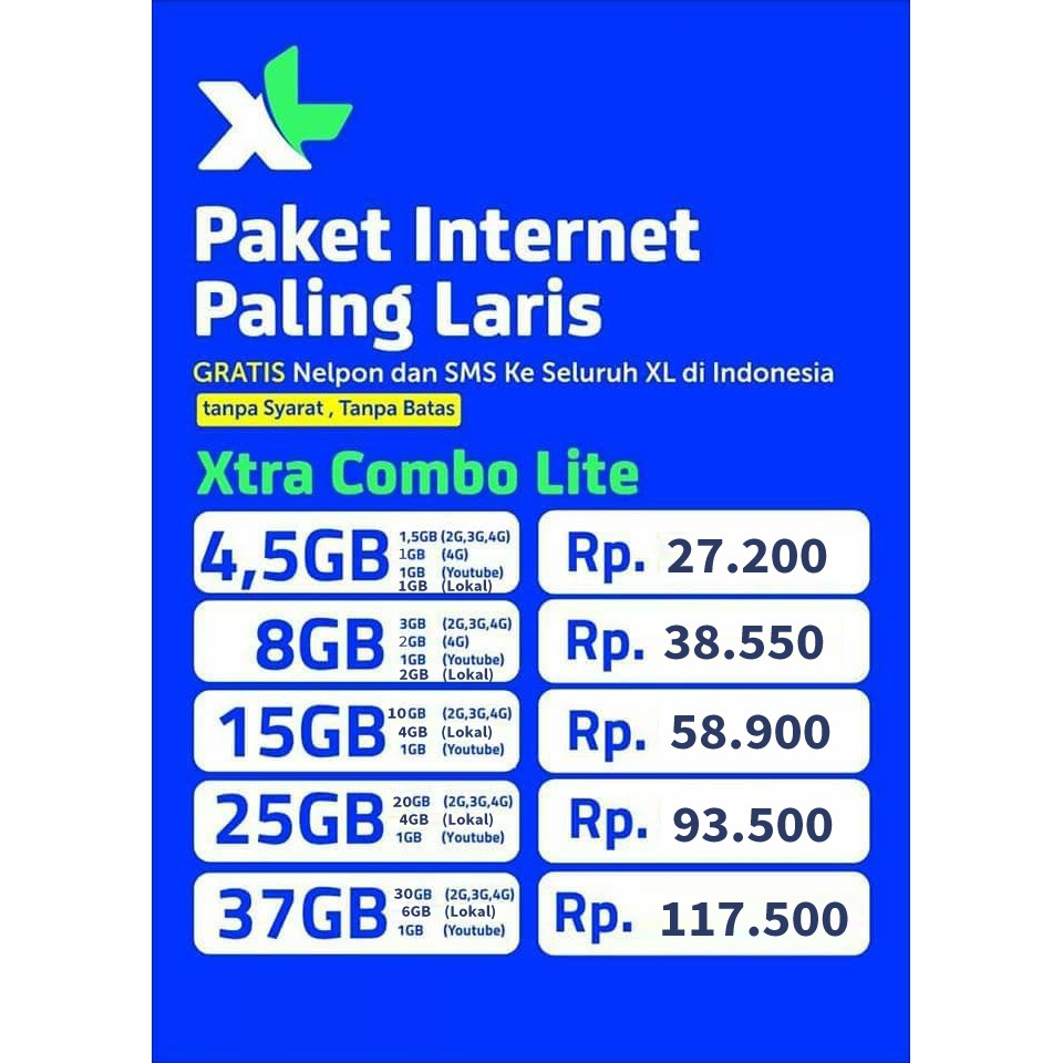 Jual XL Axiata Xtra Combo Lite Kuota Hingga 55GB Xtra