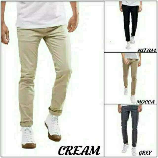 Celana Chino Panjang Pria 26 - 36 | Chino Slim Cowok Cream