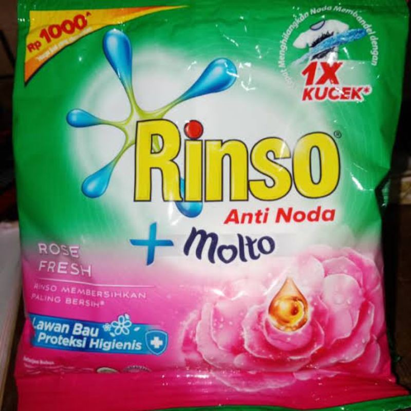 Rinso + Molto Anti Noda Rose Fresh 44gr / Sabun Cuci / Detergent