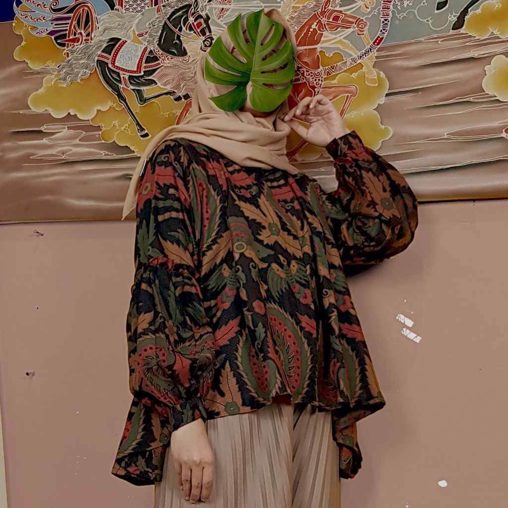 Jual Atasan Blouse Lengan Balon Wanita Batik Modern 01 - Mahkota